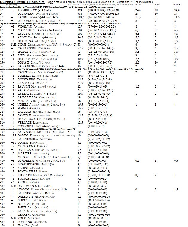 Classifica Circuito aggiornata al Torneo Primaverile 2025