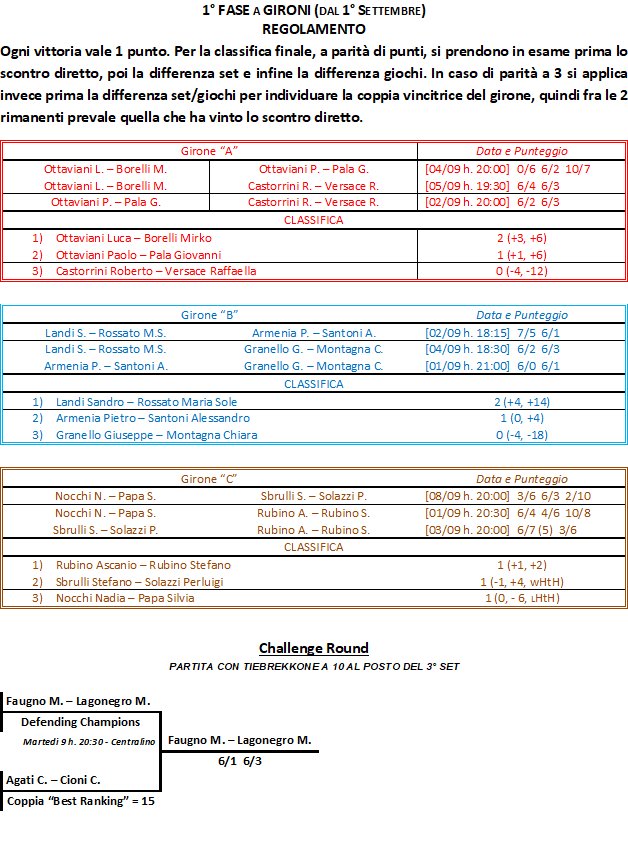 XVII Trofeo “Tommaso Mariani” – 16° Torneo Open di Doppio