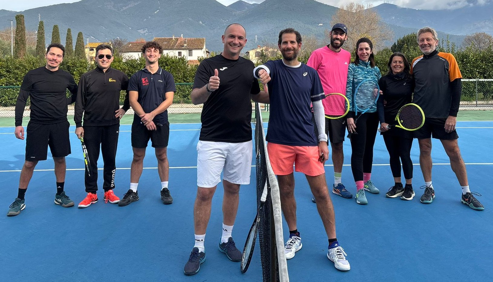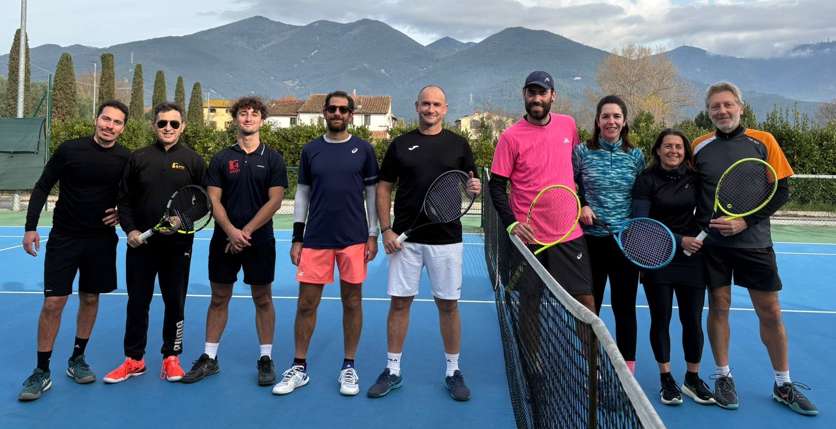 Domenica 16 Novembre scorso è stata disputata una appassionante edizione dell’Americana (Special Event 2025), resa ancora più bella dalla imprevedibilità di alcune eliminazioni anticipate che hanno riguardato i favoriti della vigilia. Ritrovo alle 09:30 per ricca colazione (22 paste!) e lettura del regolamento, poi via ad alcuni giri di prova per metabolizzare il meccanismo di gioco. L’estrazione ha prodotto la seguente turnazione: Volpi Martina prima a servire su Pelosi, che ribatte su Pazzagli e così via con nell’ordine Cioni, De Romanis, Ottaviani Paolo, Borelli, Versace, Armenia, Ottaviani Luca. Il primo errore è stato commesso da De Romanis, la prima eliminata è stata invece Volpi alla 14a turnazione. Resiste per altri 3 turni De Romanis (9°), poi alla 19a turnazione Armenia mette a segno il primo ACE, cioè un punto vincente non toccato dall’avversario che gli permette di recuperare 1 punto di penalità (ogni errore invece ne assegna 2, si esce a 10 punti). 8a è Versace, il cui gioco coraggioso in spinta mal si addice alla formula che premia chi dosa i rischi. Versace esce alla 26a turnazione mentre con grande sorpresa alla 29a esce Cioni (7°), uno dei grandi favoriti della vigilia in quanto vincitore di ben 11 delle 22 Americane già disputate ai 4 Gatti. La collocazione mattutina non lo aiuta, il sole nemmeno: partenza buona (primo errore al 7° turno) ma poi subisce l’ACE di Armenia (al 19°) che forse gli fa crollare la fiducia, con troppi errori ravvicinati che lo condannano all’eliminazione (23°, 28° e 29° turno). Armenia (6°) lo segue alla 42a turnazione, al 6° errore in quanto ha messo a segno un ACE. Anche lui gioca in modo poco conservativo: questa strategia di gioco non paga nella prima fase, meglio prendere i rischi quando i giocatori si riducono e si corre molto di più per cui è più facile realizzare un ACE. Infatti il secondo ACE lo realizza Borelli al 27° turno con una beffarda palla corta che un mezzo infortunato Ottaviani Paolo non può raggiungere: ancora alle prese con i postumi della contrattura rimediata allo Shoot Out Ottaviani continua a dire che si ritira ma solo a parole… Al 5° posto si classifica Ottaviani Luca che esce alla 49a turnazione non senza polemiche: infatti sostiene convintamente di aver commesso un errore in meno ma il tabellino degli errori lo condanna, a meno che per sbaglio un errore gli sia stato assegnato in modo errato al posto di un altro giocatore. Purtroppo non c’era un arbitro ufficiale di gara e abbiamo dovuto arrangiarci con il “Fai da te”. Comunque Ottaviani Luca esce al 6° errore in quanto cerca di salvarsi piazzando un ACE su Pazzagli al 43° turno. 4° è Borelli che commette il primo errore solo alla 30a turnazione (avendo anche già realizzato un ACE) ma che subito dopo subisce un ACE di Pelosi e crolla nel finale a 4 con errori ravvicinati fra il 46° e il 50° turno. Nella massacrante fase a tre che parte alla 51a turnazione dunque restano: